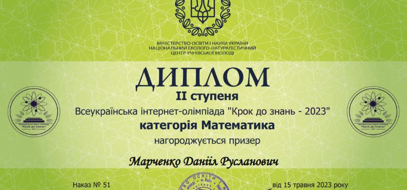 В лютому - травні 2023 року в м. Київ на базі Національного еколого-натуралістичного центру учнівської молоді Міністерства освіти і науки України була проведена Всеукраїнська інтернет-олімпіада "Крок до знань - 2023".