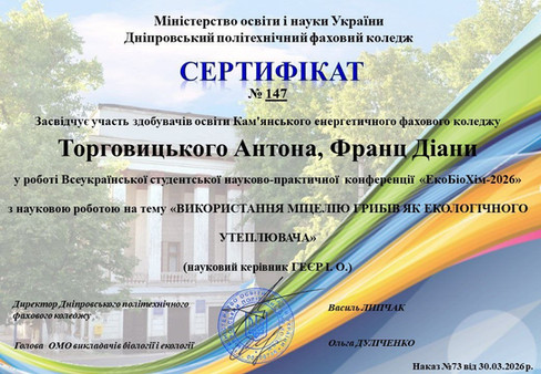 Ми пишаємося нашими здобувачами освіти, які вже сьогодні роблять вагомий внесок у формування екологічно відповідального суспільства.