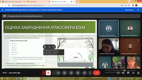 Під час захисту практики студенти представили звітні матеріали, презентували результати власних досліджень та запропонували рекомендації щодо вдосконалення екологічних технологій. Показали уміння застосовувати теоретичні знання на практиці та самостійно аналізувати екологічні проблеми.