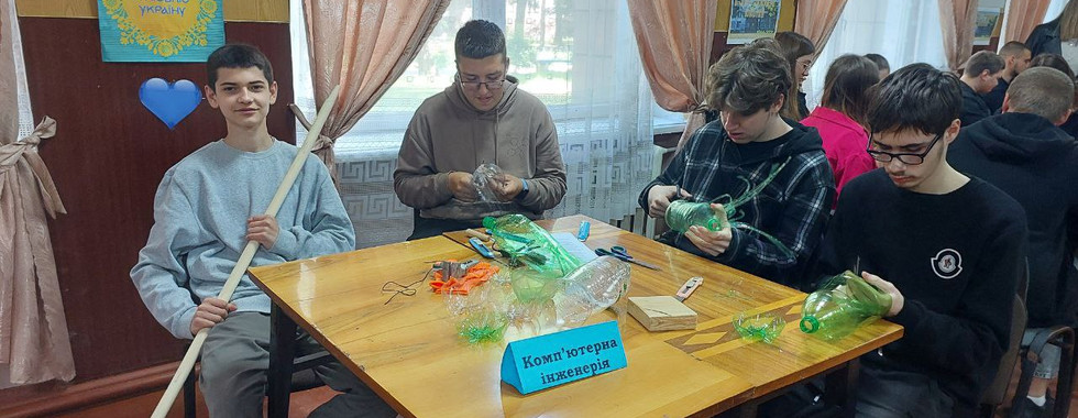 Разом з майтер-класом найкреативніші здобувачі освіти заздалегідь підготували власні вироби з пластику та презентували їх у форматі еко-виставки, яка доповнила майстер-клас. Представлені вироби з пластику - це справжня демонстрація того, як можна перетворити відходи на цінність!
