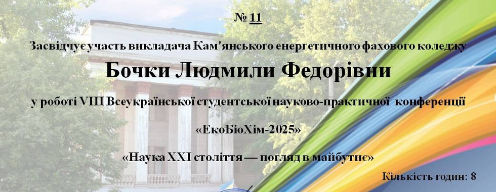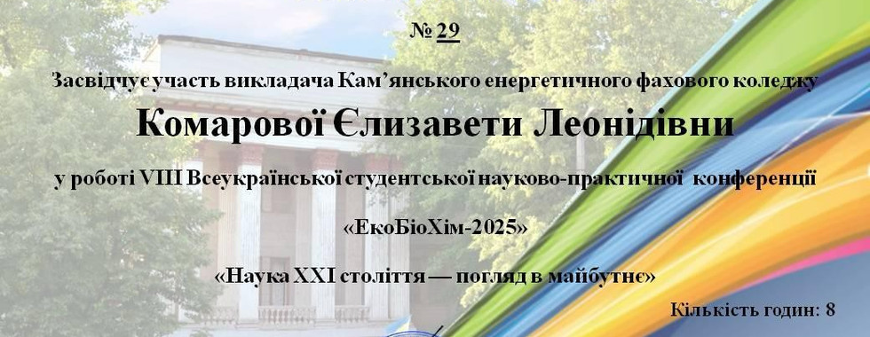 Участь у Всеукраїнській студентській науково-практичній конференції «ЕкоБіоХім-2025» на тему: «Наука XXI століття — погляд у майбутнє»